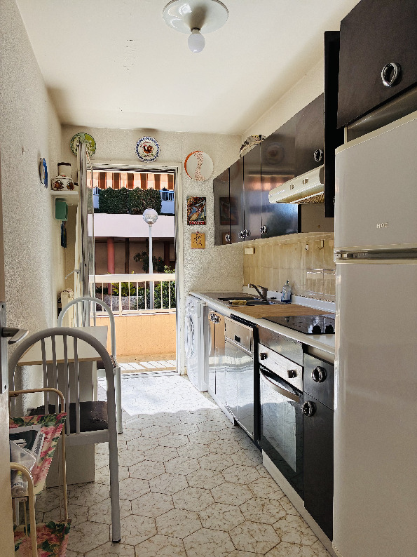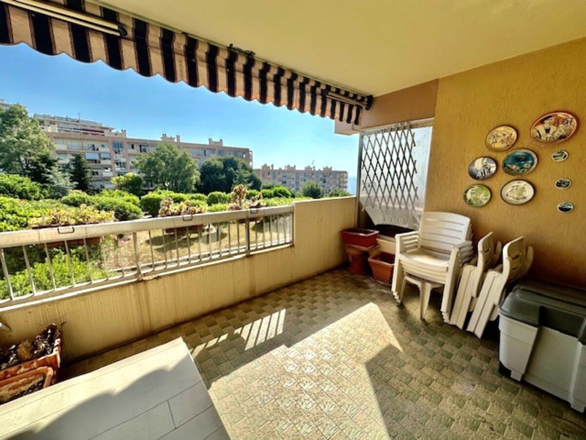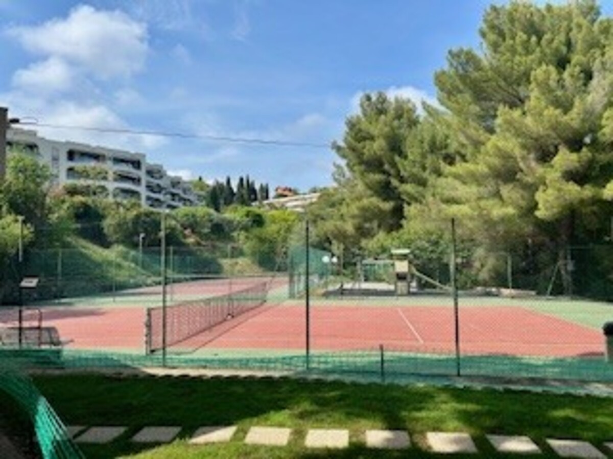 IN VENDITA Nizza Fabron, nella prestigiosa residenza Le Ciel de Fabron dotata di piscina, club-house, campi da tennis, giardini e servizio di portineria, al 1° piano con ascensore, ampio bilocale passante composto da ingresso con diversi armadi a muro, cucina indipendente attrezzata con lavatrice e lavastoviglie, grande soggiorno che si apre su terrazza coperta con vista mare, bella camera con armadio e balcone. Una cantina e un posto auto completano la proprietà.