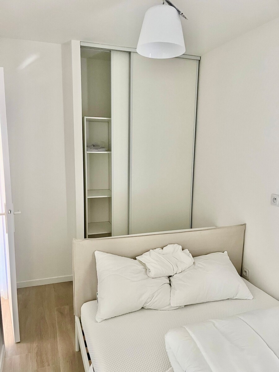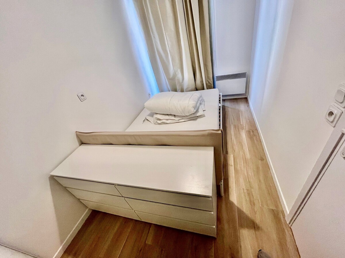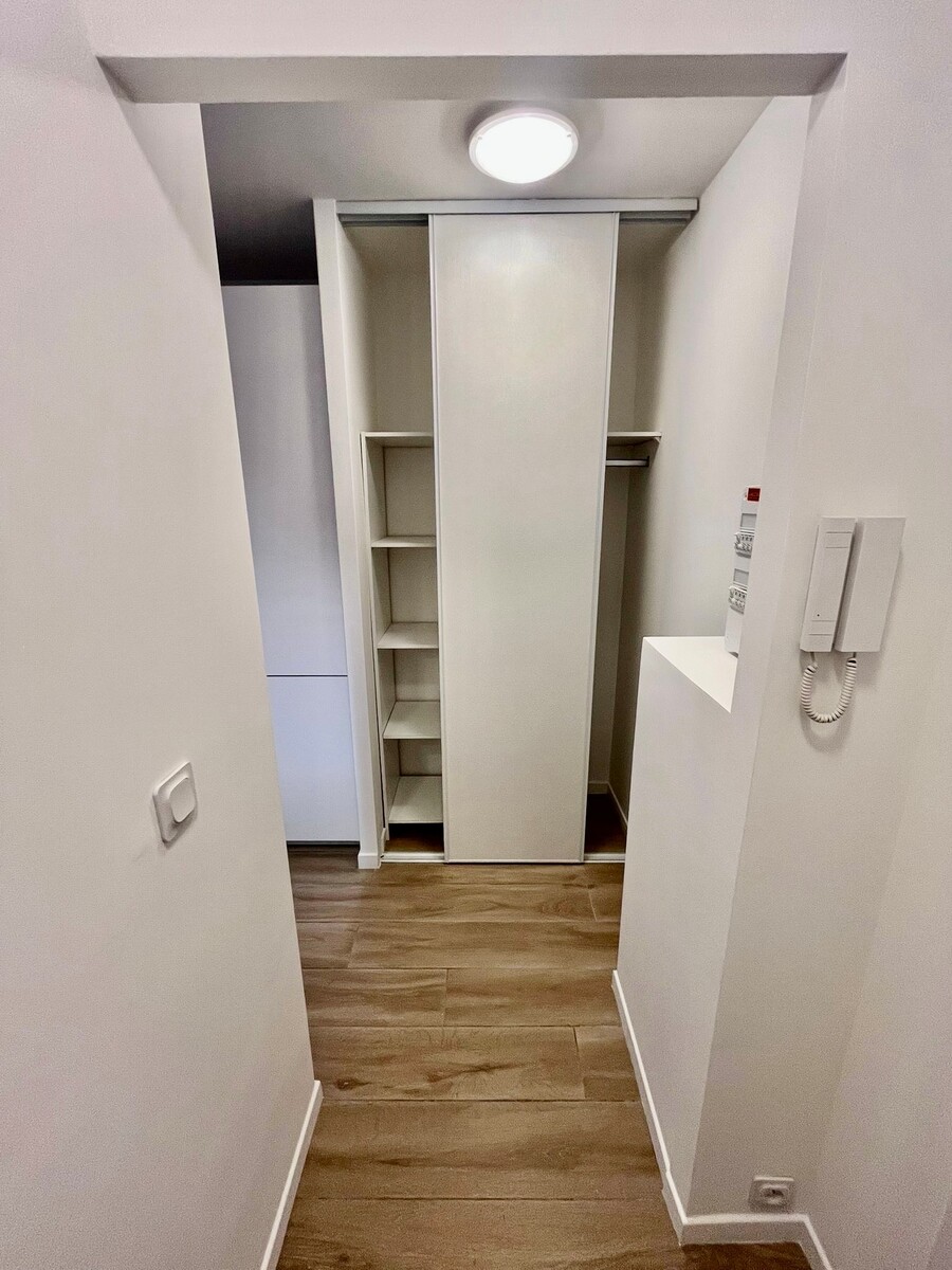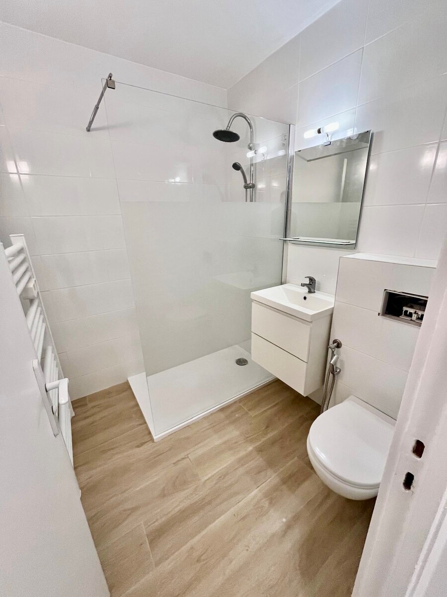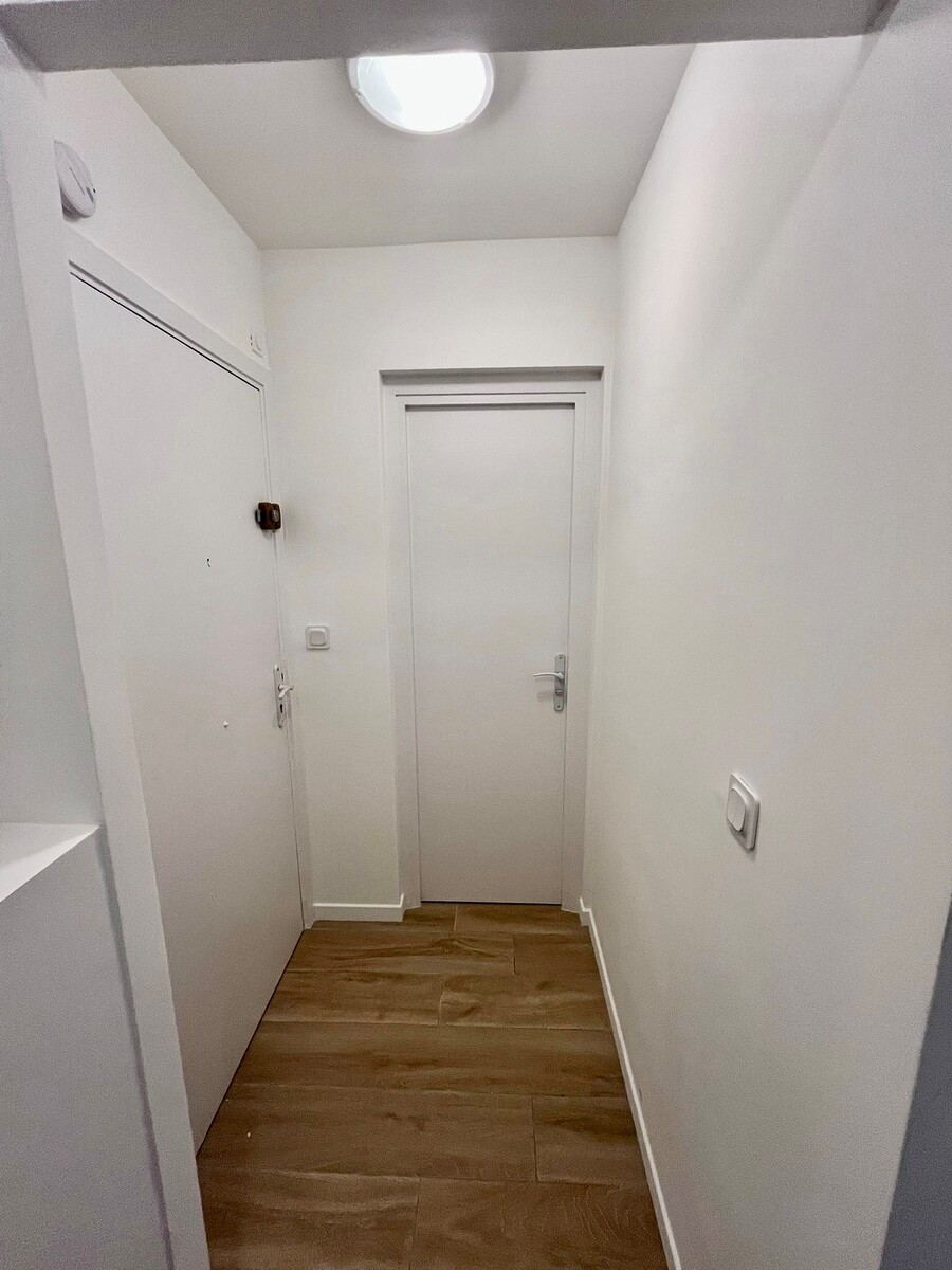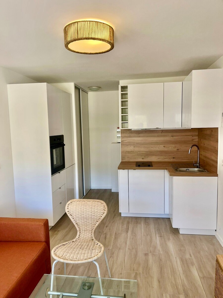 A LOUER NICE RIQUIER, a quelques pas de la gare SNCF, dans rue calme et immeuble bien entretenu au 4ème étage avec ascenseur cet appartement a fait l'objet d'importants travaux de rénovation. Il comprend une entrée avec placard, un séjour avec cuisine ouverte, une salle de douche avec WC, une pièce de 7,36m2 aménagée en chambre à coucher et une belle et spacieuse terrasse exposée EST avec vue dégagée sur la colline du Mont Alban. Climatisation réversible, beaucoup de rangements, calme. Une petite cave complète le bien. Tout beau, tout neuf !