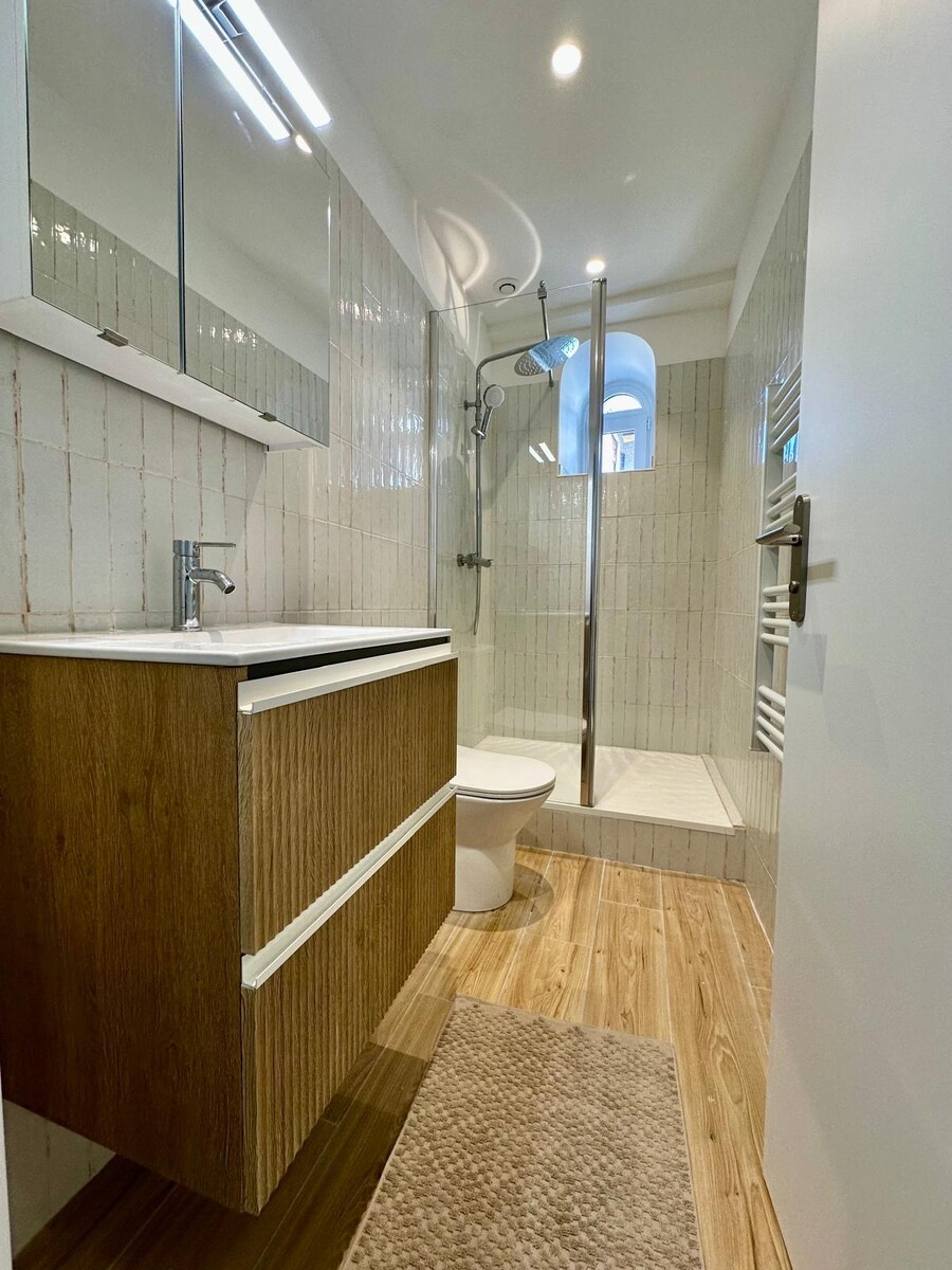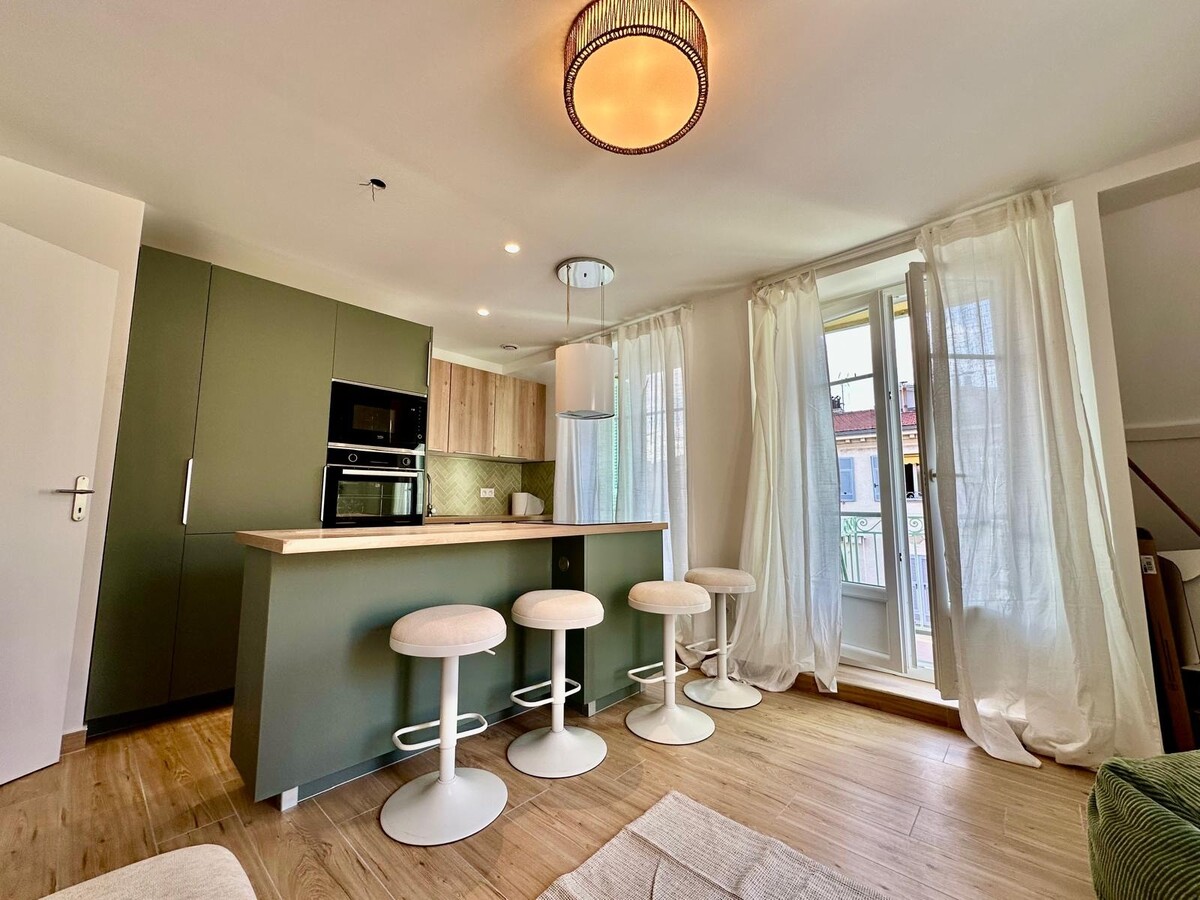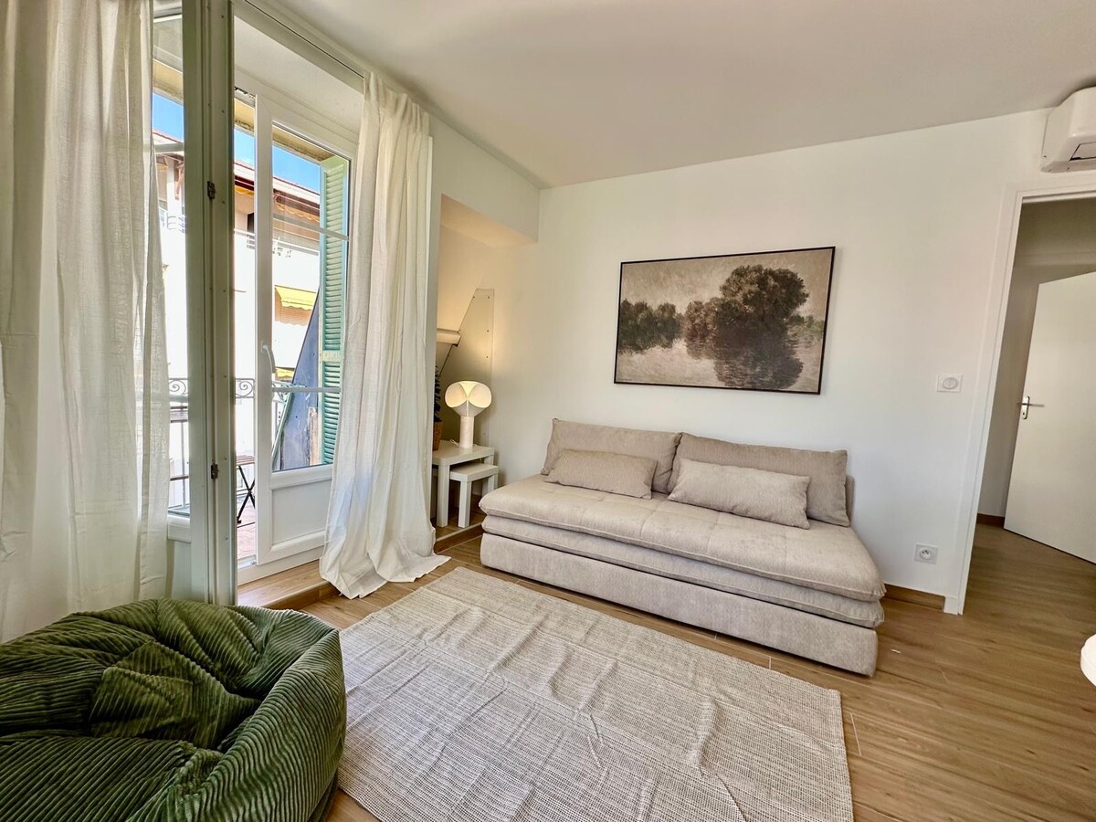 IN AFFITTO – Iper centro di Nizza, dietro Nice Étoile, in una strada tranquilla, all’interno di un affascinante palazzo d’epoca. Situato all’ultimo piano (4° senza ascensore), questo piccolo appartamento ha tutto di un grande. Angolare e con doppia esposizione, gode di una luminosità eccezionale grazie a 4 porte-finestre che si aprono su 4 piccole terrazze, una rarità in centro città. Si compone di ingresso, soggiorno con cucina a vista, camera con armadio e bagno con doccia e WC. Appartamento completamente ristrutturato con materiali di qualità, finiture curate, aria condizionata, ottimo isolamento, arredato a nuovo, mai abitato. Un vero nido accogliente nel cuore di Nizza.