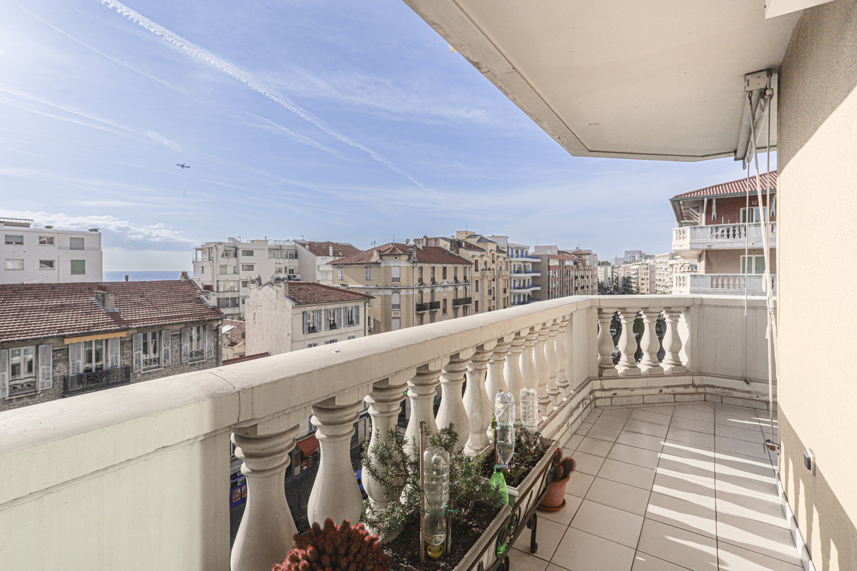 Dans une résidence de standing, très bel appartement 2 pièces situé en étage élevé (5 sur 7), bénéficiant d’une terrasse avec superbe vue mer et piscine. Il se compose d’une entrée avec rangements, d’un séjour lumineux ouvrant sur la terrasse en angle, d’une cuisine indépendante équipée, d’une chambre avec placard, d’une salle de douche avec WC. Appartement en bon état, climatisé, lumineux et bien agencé. La terrasse permet de profiter pleinement de la vue mer et du climat niçois. Un garage fermé au sous-sol complète ce bien.